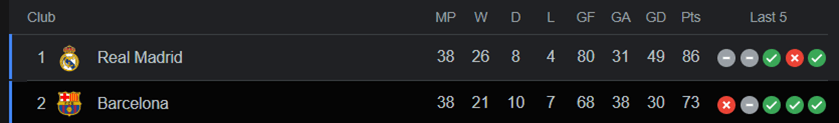 This season is looking better in the league for Barca, as you can see in the 2022-23 table, but they have already suffered another El Clásico defeat, this time 3-1 to Madrid.