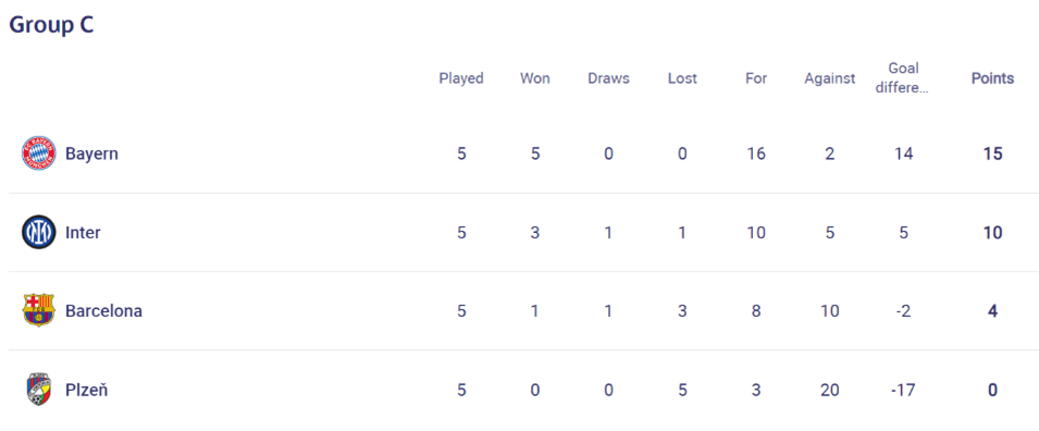 Barcelona have performed even worse this season, with 4 points from a possible 15 so far; their only win came against Viktoria Plzen. The Czechian side, who are top of the 1st division in Czechia, are Barca’s final opponent in this year’s UCL. Even if they beat Plzen and Inter lose to Bayern, Barca will be 3 points behind.