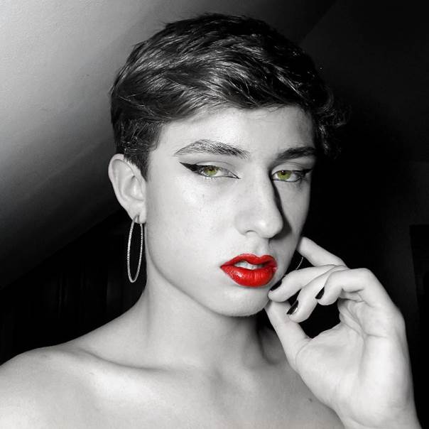 Despite the professionalism of Aaron’s photograph, it was in fact taken in his bedroom, demonstrating his skill at framing and lighting. He cites Marilyn Monroe and her iconic headshot as an inspiration. The bold and colourized lipstick contrasts heavily with the greyscale of the photo, drawing attention to it. The green in the eyes is less obvious but is powerful none the less in drawing the eye up the photo, away from the focal point of the lips. Aaron wants the shot to represent the idea that makeup, no matter your gender, can make you feel more confident when you need it the most – certainly an important message. The piece also therefore, arguably, subverts the observer’s expectations surrounding gender norms, making it all the more thought-provoking.