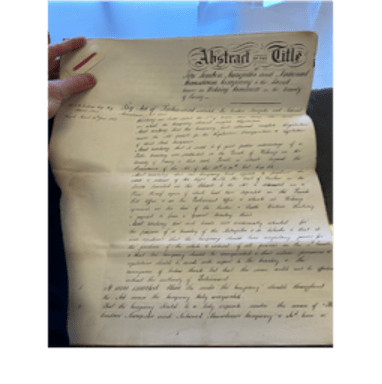 Nevertheless, this idea was formally taken up by Sir Richard Broun and Richard Sprye, who chose the obscure town (village, really) of Woking as the site for the cemetery, thanks to its cheap land and ‘goldilocks’ proximity to the capital. In the Surrey Archives (which I highly recommend visiting) I found their Memorandum Of Agreement, recording their provisional registration of the London Necropolis and National Mausoleum Company on 5 February 1850 as a joint-stock company valued at £250,000. It documents their negotiations with Southwestern Railway, and also sets out their meetings with the Earl of Onslow, who will become relevant in just a moment.